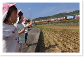 あぜ歩き、草花摘みを楽しむ。電車も見られるみんなが大好きな散歩コース。
